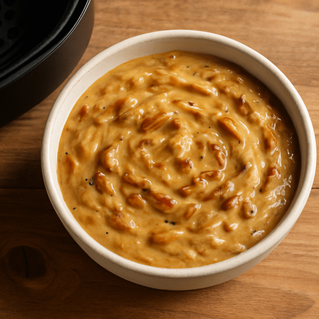 Molho de queijo cremoso na Airfryer, pronto em 15 minutos: derrete por igual, fica sedoso e acompanha batatas, massas e sanduíches.