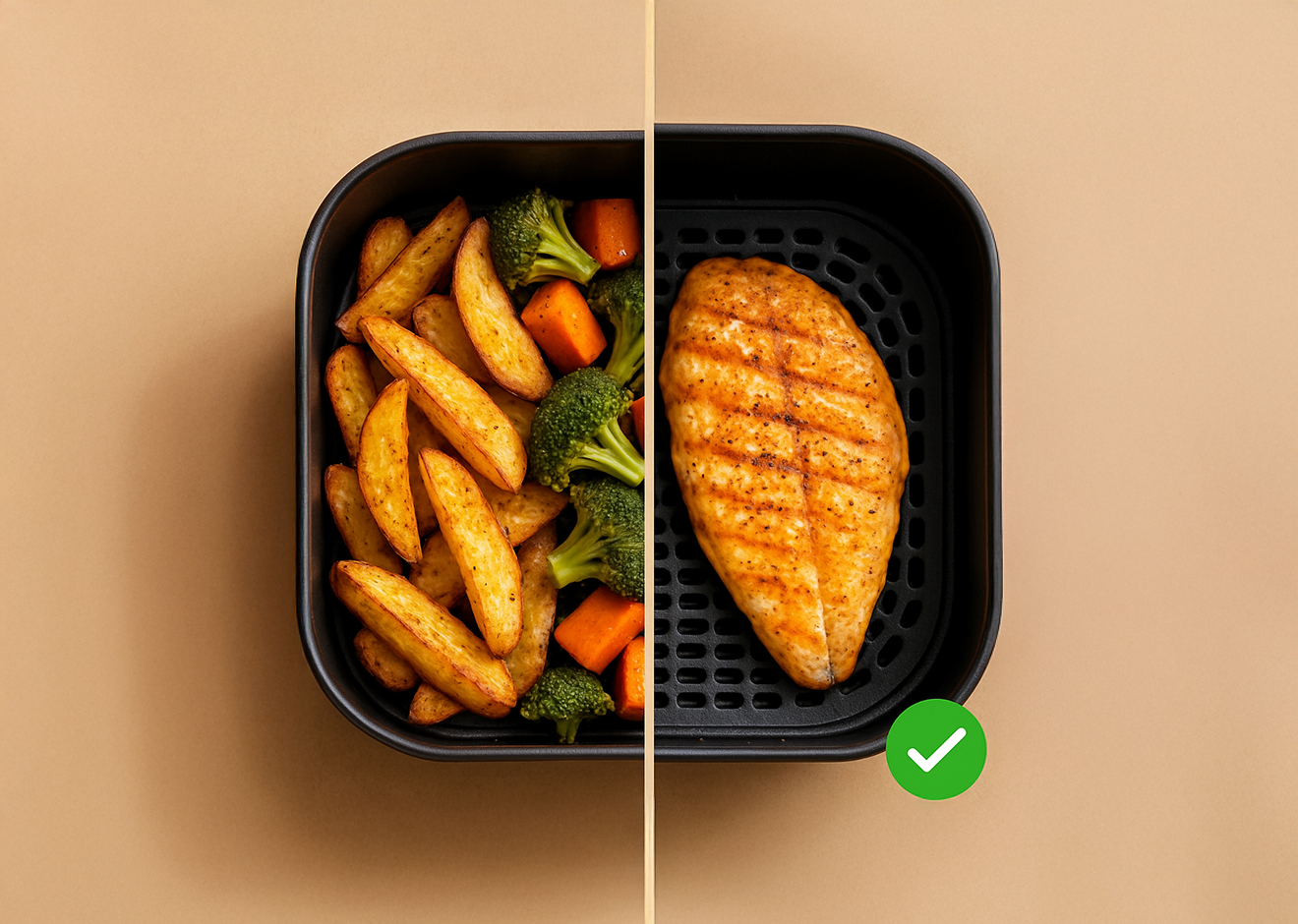 Para testar agora Faça um trio rápido e saudável: filés de tilápia com páprica e limão; brócolis com alho e raspas de limão; batata-doce em meias-luas finas com pitada de sal e páprica; prepare cada um em camada única a 170–180 °C, finalizando 2–4 minutos a 190–200 °C para cor; sirva com iogurte temperado e ervas.