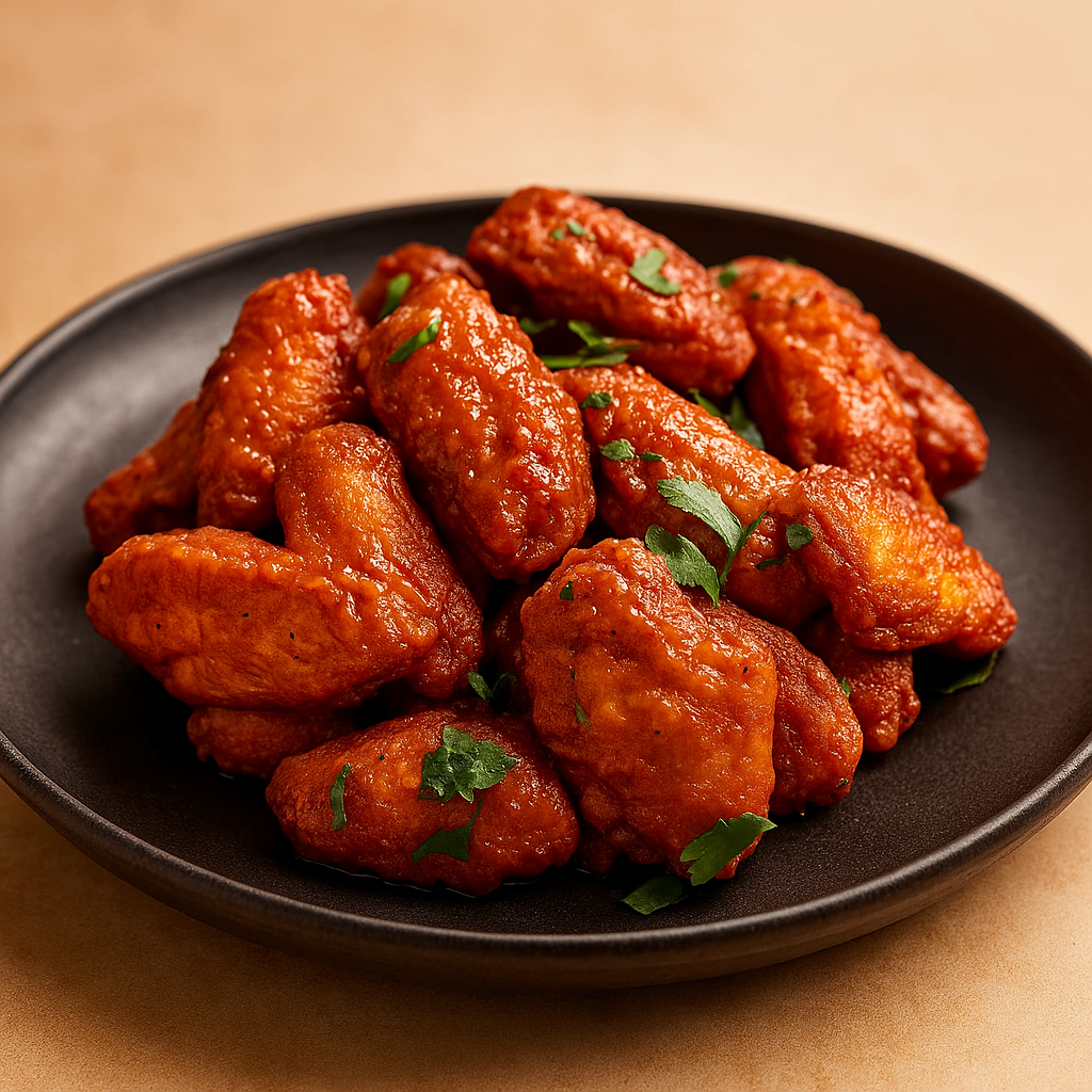 Essa receita transforma asinhas de frango simples em um petisco dourado e crocante por fora, suculento por dentro e com aquele toque picante irresistível, tudo isso sem fritura e com ingredientes que você já tem em casa.