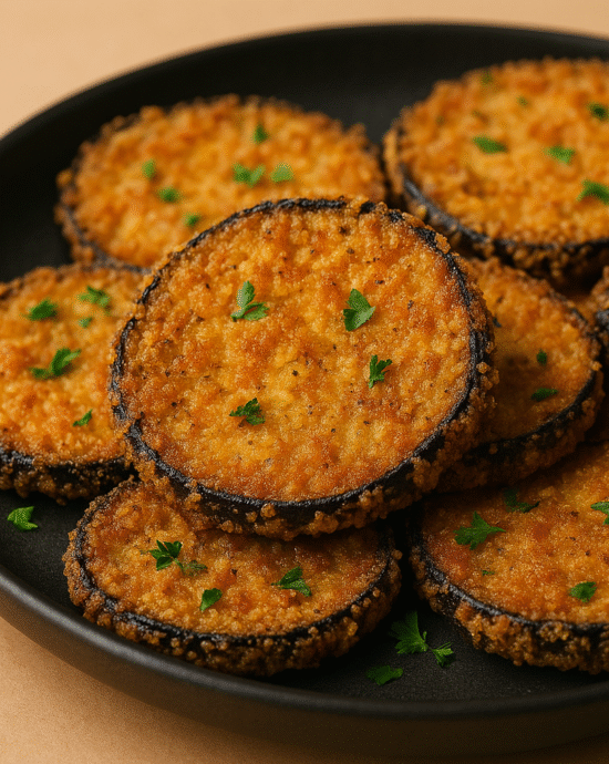 Se você procura uma receita de berinjela crocante, fácil e sem fritura, essa berinjela empanada na Air Fryer vai surpreender. Com preparo simples e poucos ingredientes, ela entrega fatias douradas, sequinhas por fora e macias por dentro, sem precisar usar óleo.