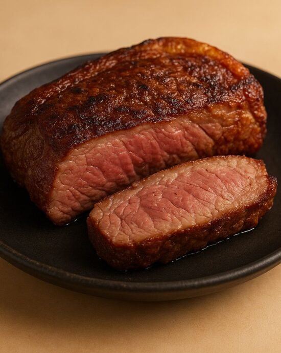 O resultado é uma picanha com casquinha crocante por fora e centro macio, que pode ser servida com chimichurri, arroz, vinagrete ou salada. Ideal para quem quer impressionar, sem precisar acender a churrasqueira.